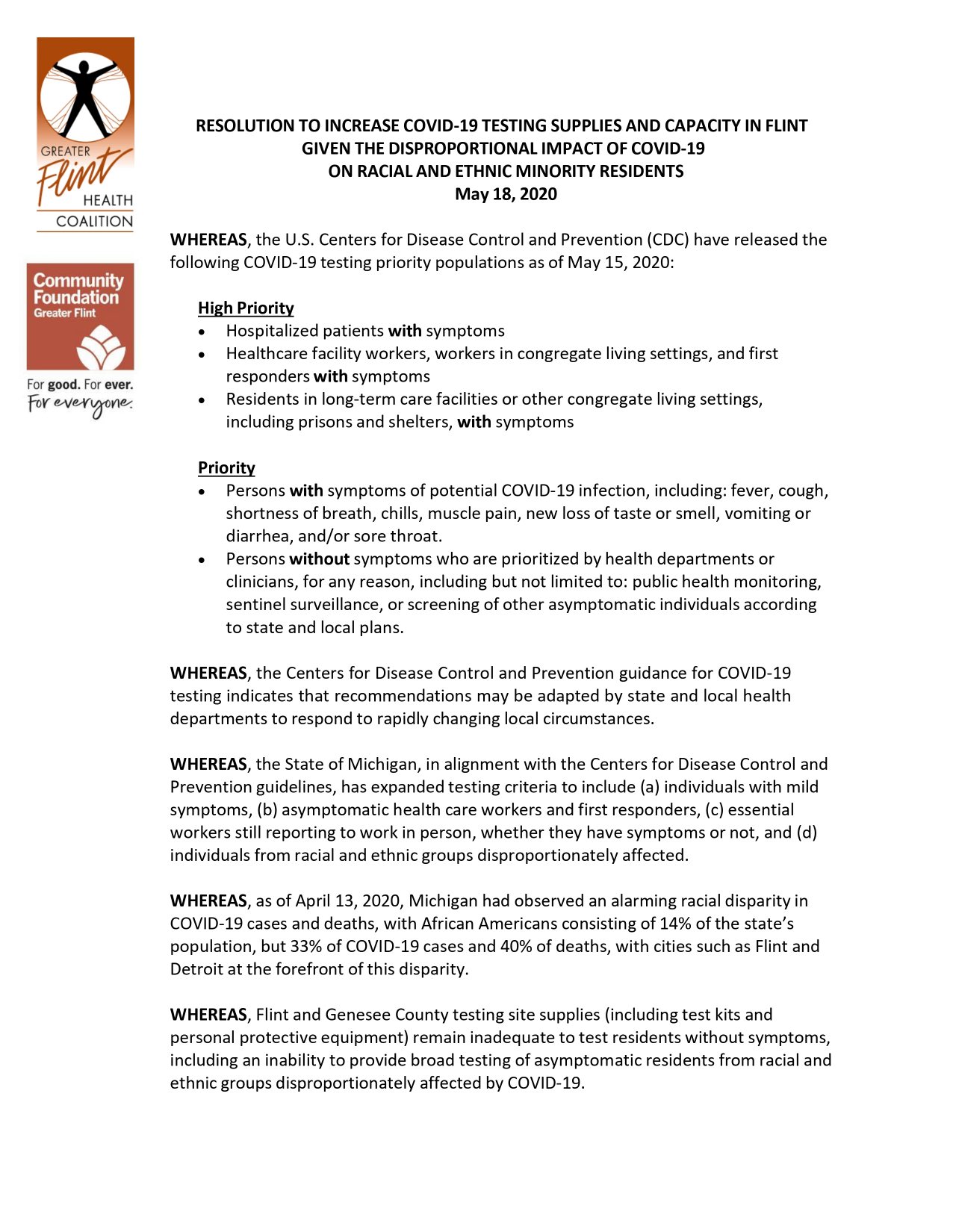 Increase COVID-19 Testing Supplies and Capacity in Flint
